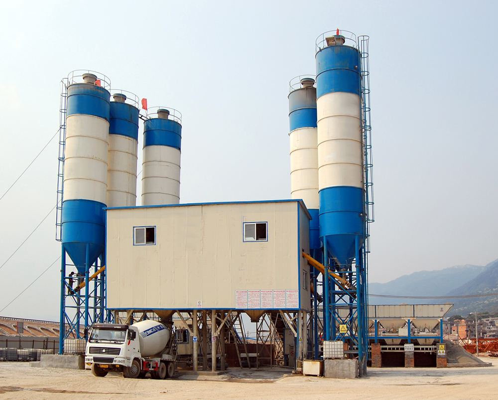 混凝土搅拌站是由搅拌主机、物料称量系统、物料输送系统、